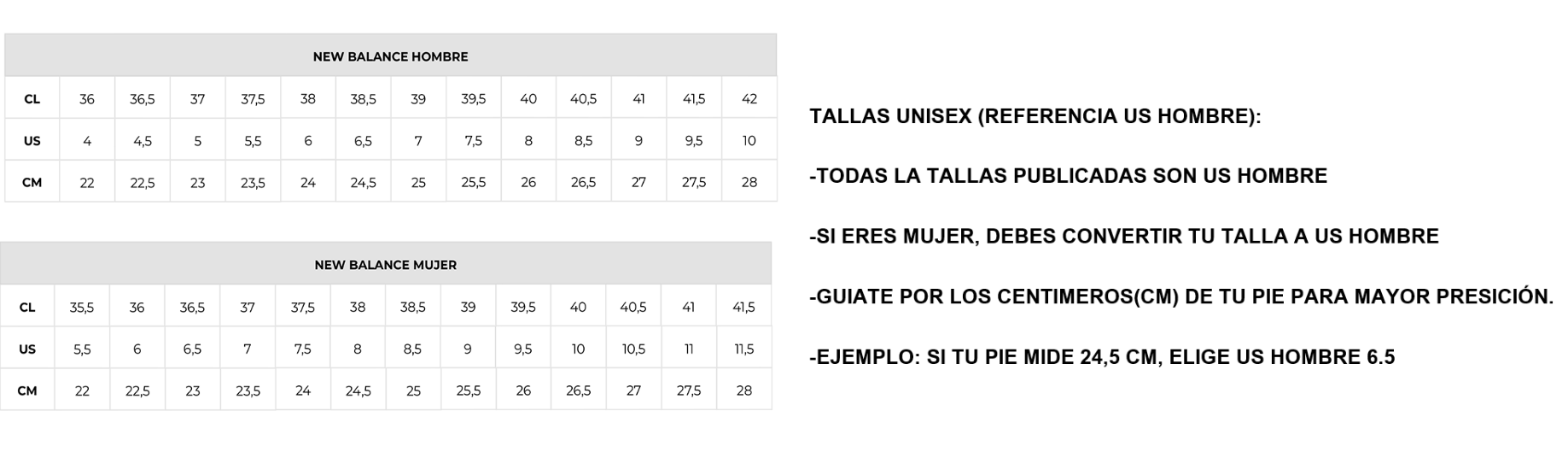 -EJEMPLO: SI TU PIE MIDE 24,5 CM, ELIGE US HOMBRE 6.5
