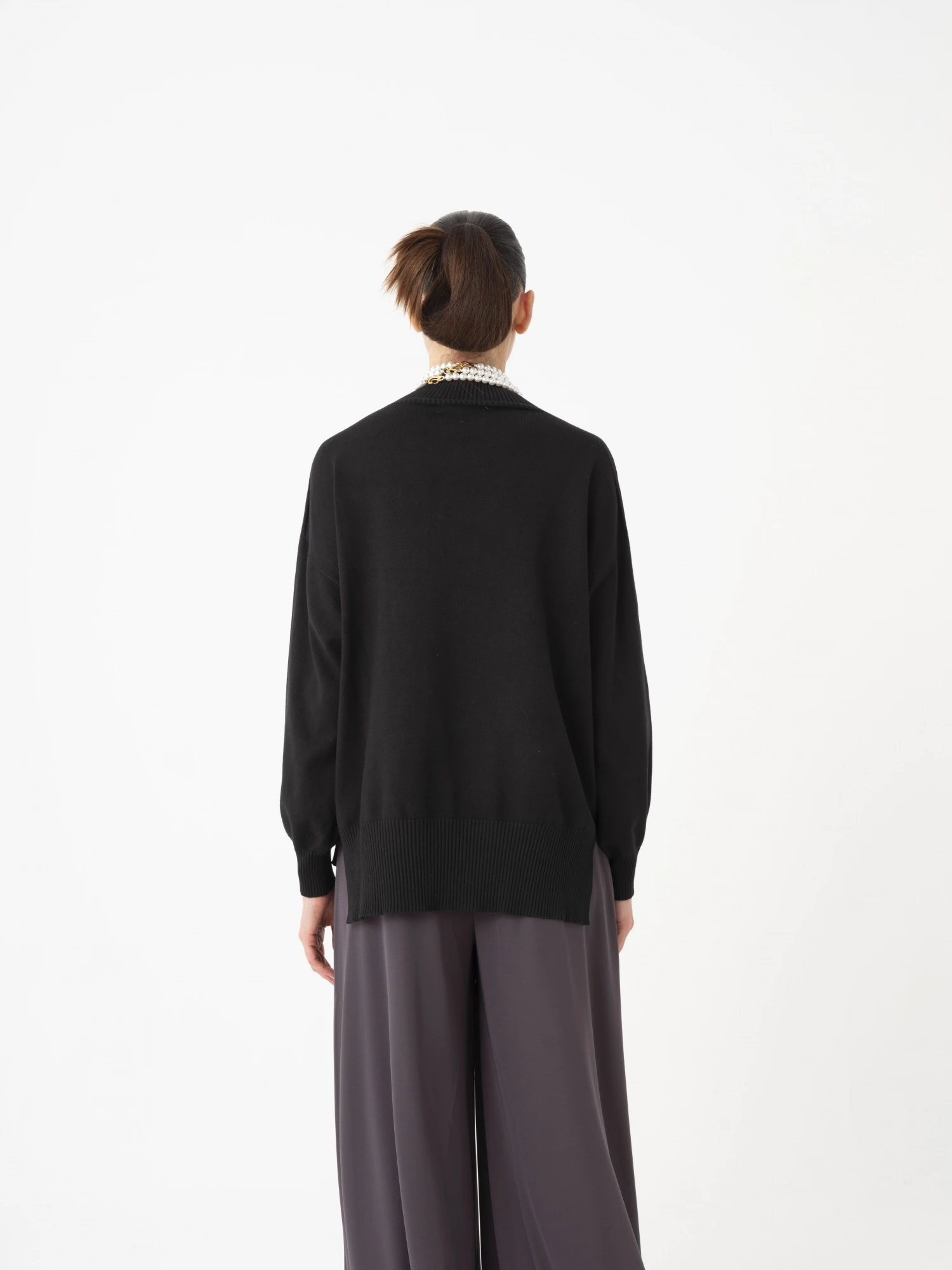 60 Sweater de cuello alto, puño largo en ruedo y manga amplia con puño alto, generando un efecto bombe. Este modelo, confeccionado con un hilado de 72% Viscosa y 28% Poliéster, ofrece una silueta moderna y elegante, perfecta para cualquier ocasión.