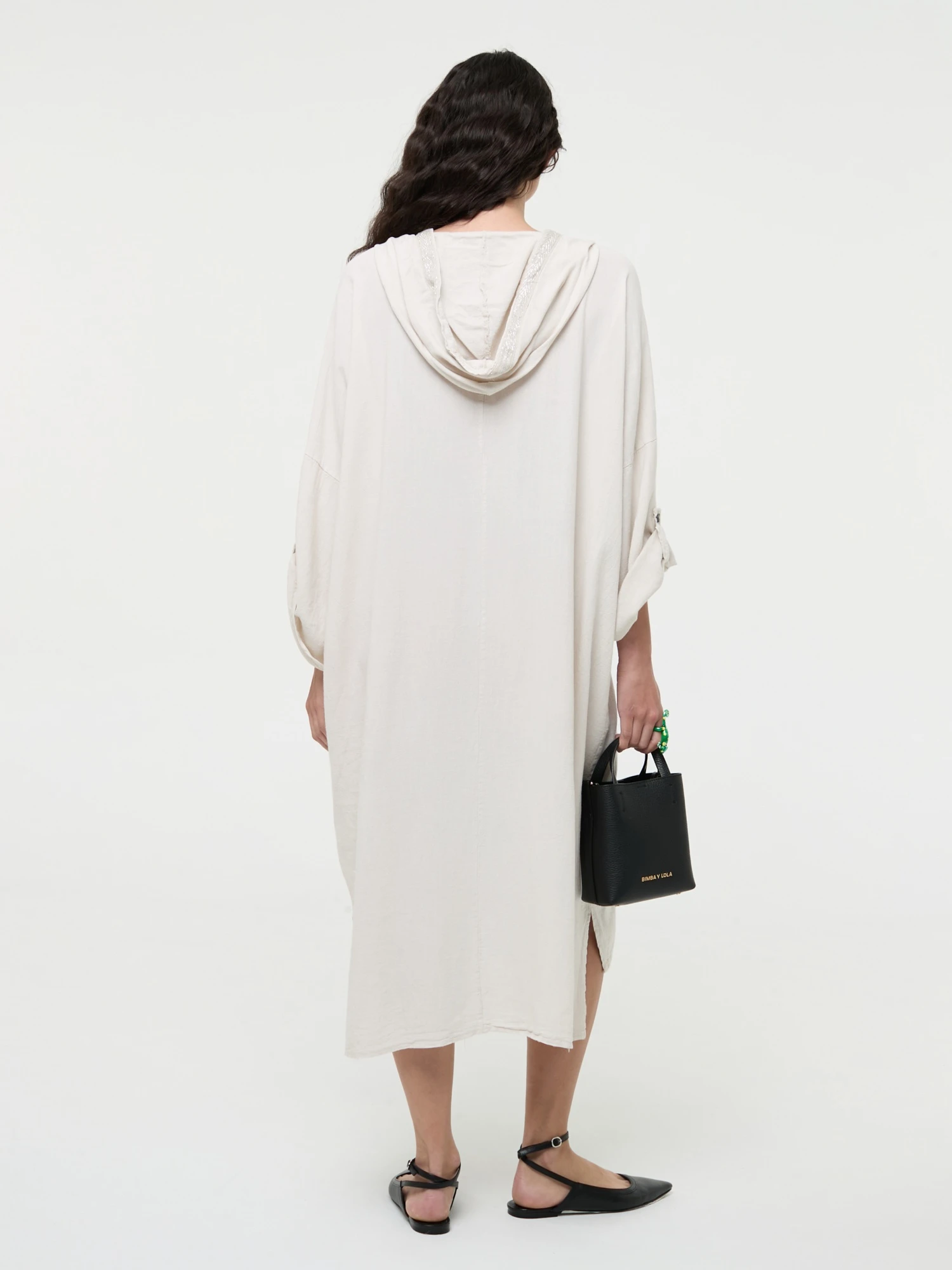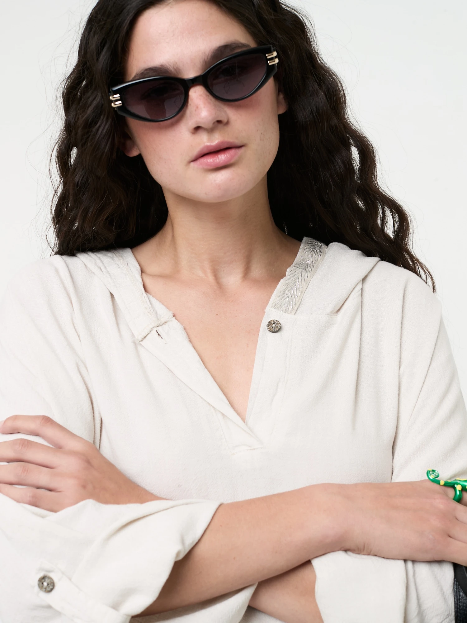 Túnica hoodie con bolsillo delantero. Cómoda y práctica, ideal para un look relajado. Composición: 55% lino, 45% viscosa.